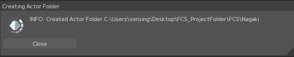 The Actor folder you entered will be created directly under the Project Folder folder in Explorer.