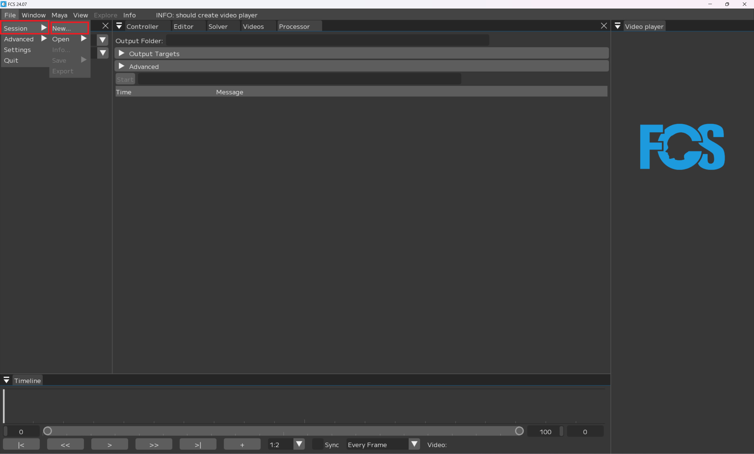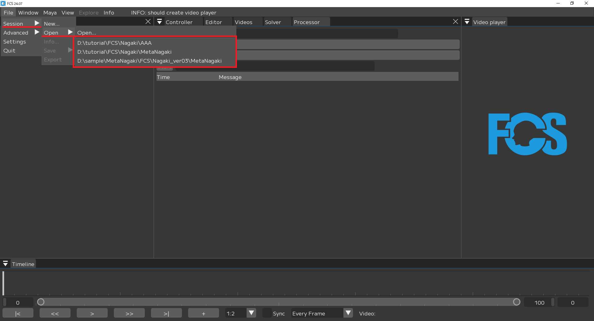 After launching FCS, go to “New…(Create new Session)” or “Open” to access the Session data.