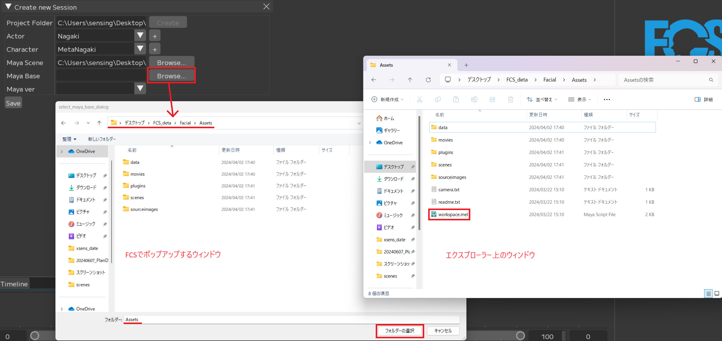 By settings details for a Session at the beginning, you can start working with the buttons on FCS without having to operate Maya separately.