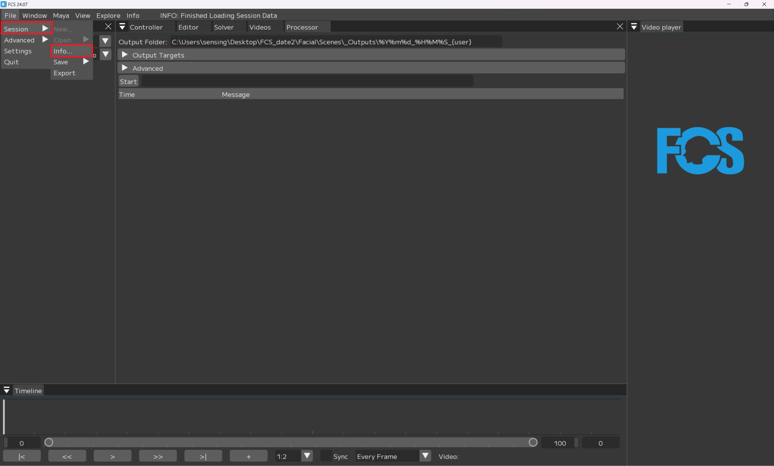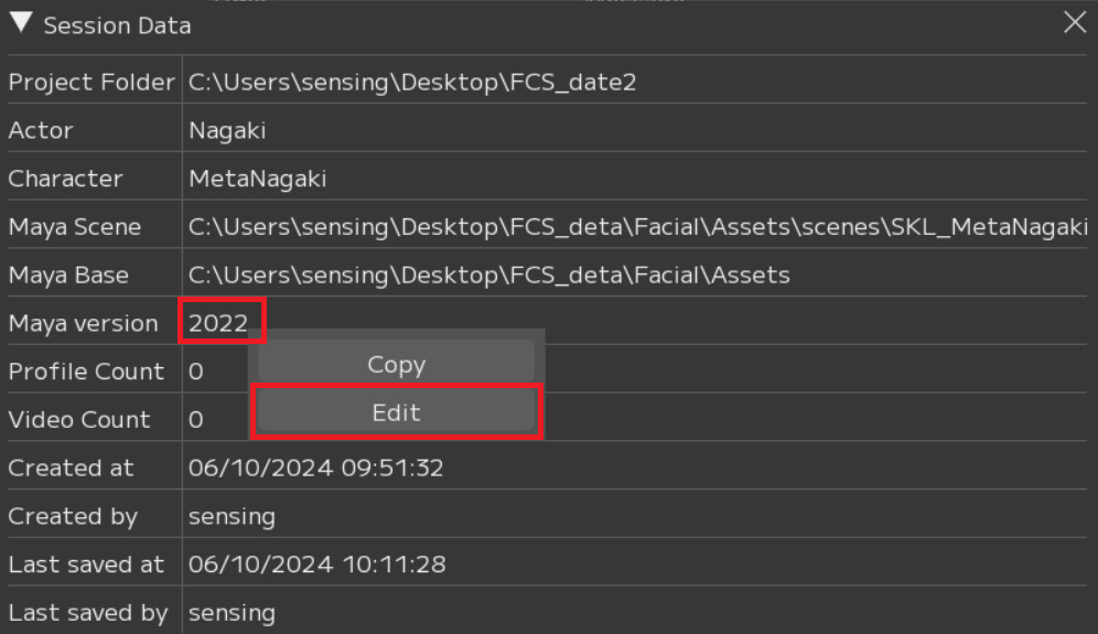 If the Maya version in New Session is not reflected in the info screen, right-click on Maya Version in the info screen and change it from Edit.