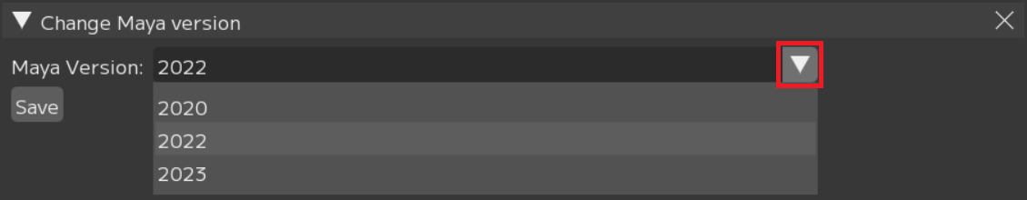To prevent accidental clicks on Maya versions, we have blacked out the Maya version so that you cannot click on anything other than the Maya version that was set at the time of creating a Session.