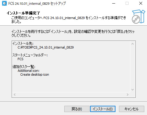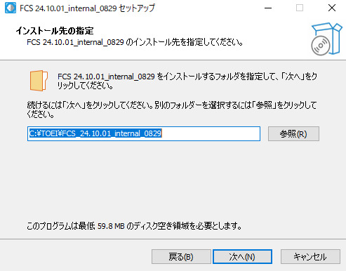 デフォルトは、C:\TOEI\FCS_”version”です。