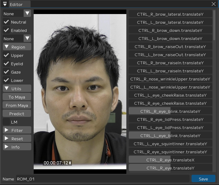 Information about which attribute of the controller corresponds to upper, lower, eye, or eyelid.