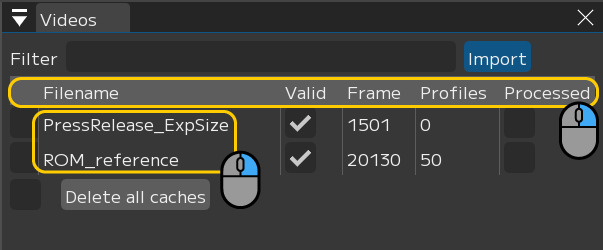 表情出力の計算に含めたいフレームを抽出すること、またはピックアップしたデータのこと