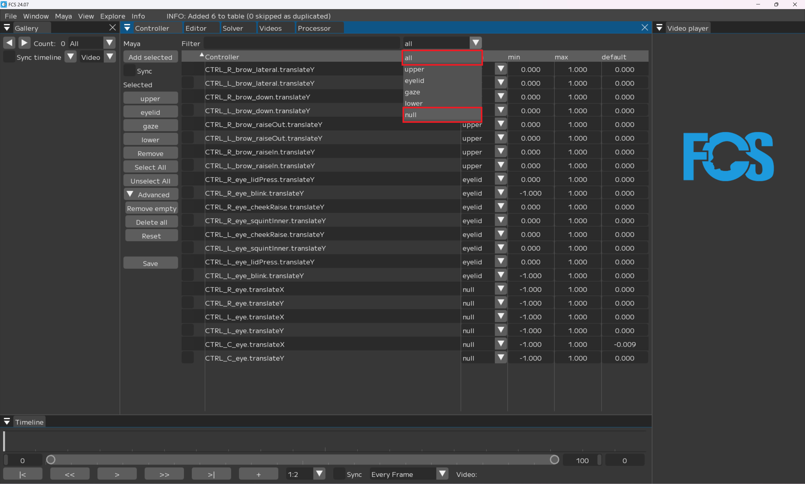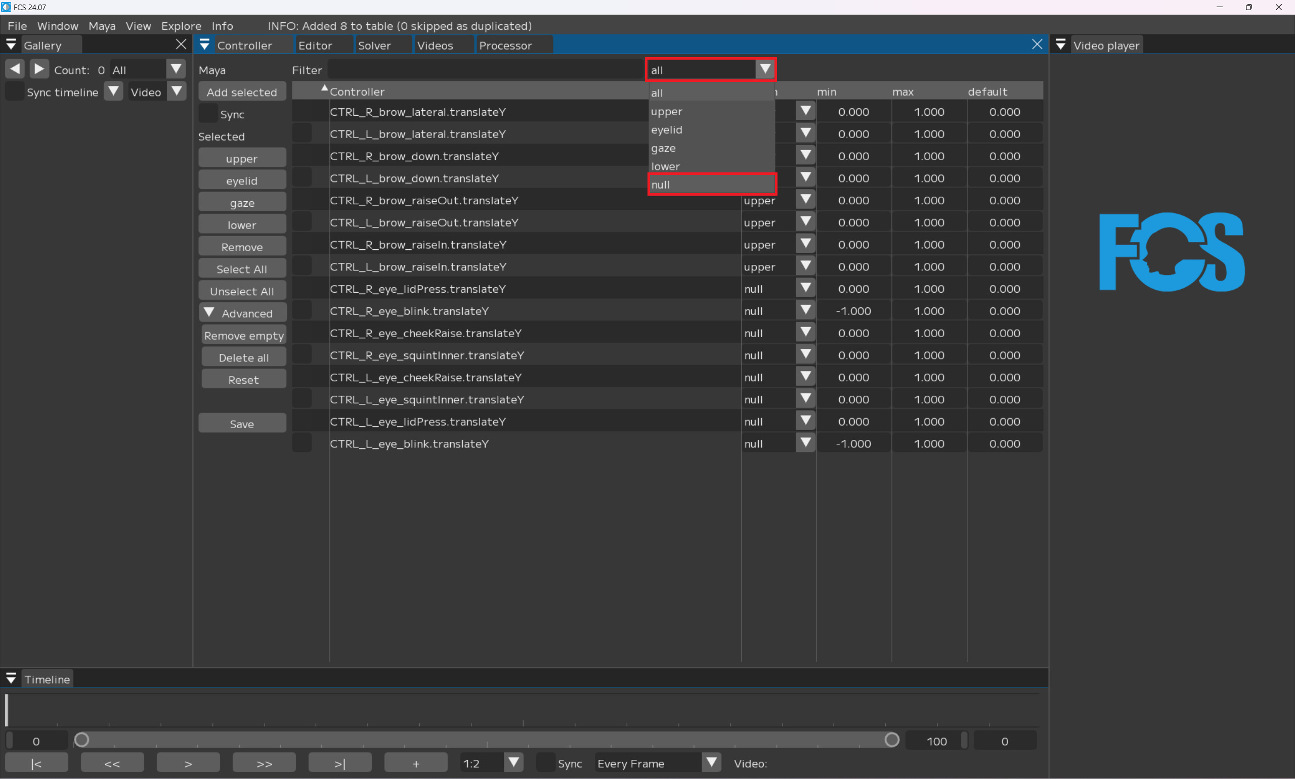 nullにすることで登録されていない項目が絞り込まれるのでUpperと同様に、Select All(=全選択)でEyelidに登録したいコントローラーを選択