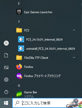1. スタートメニューから、uninstall_FCS_"version"を実行します。