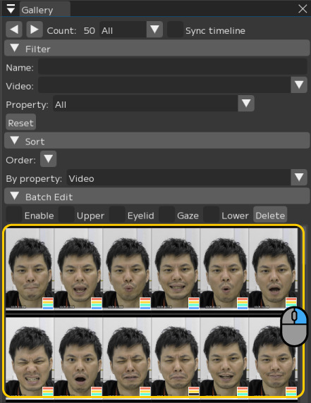 動画からピックアップしたフレーム情報とリターゲットした表情の組み合わせのこと
