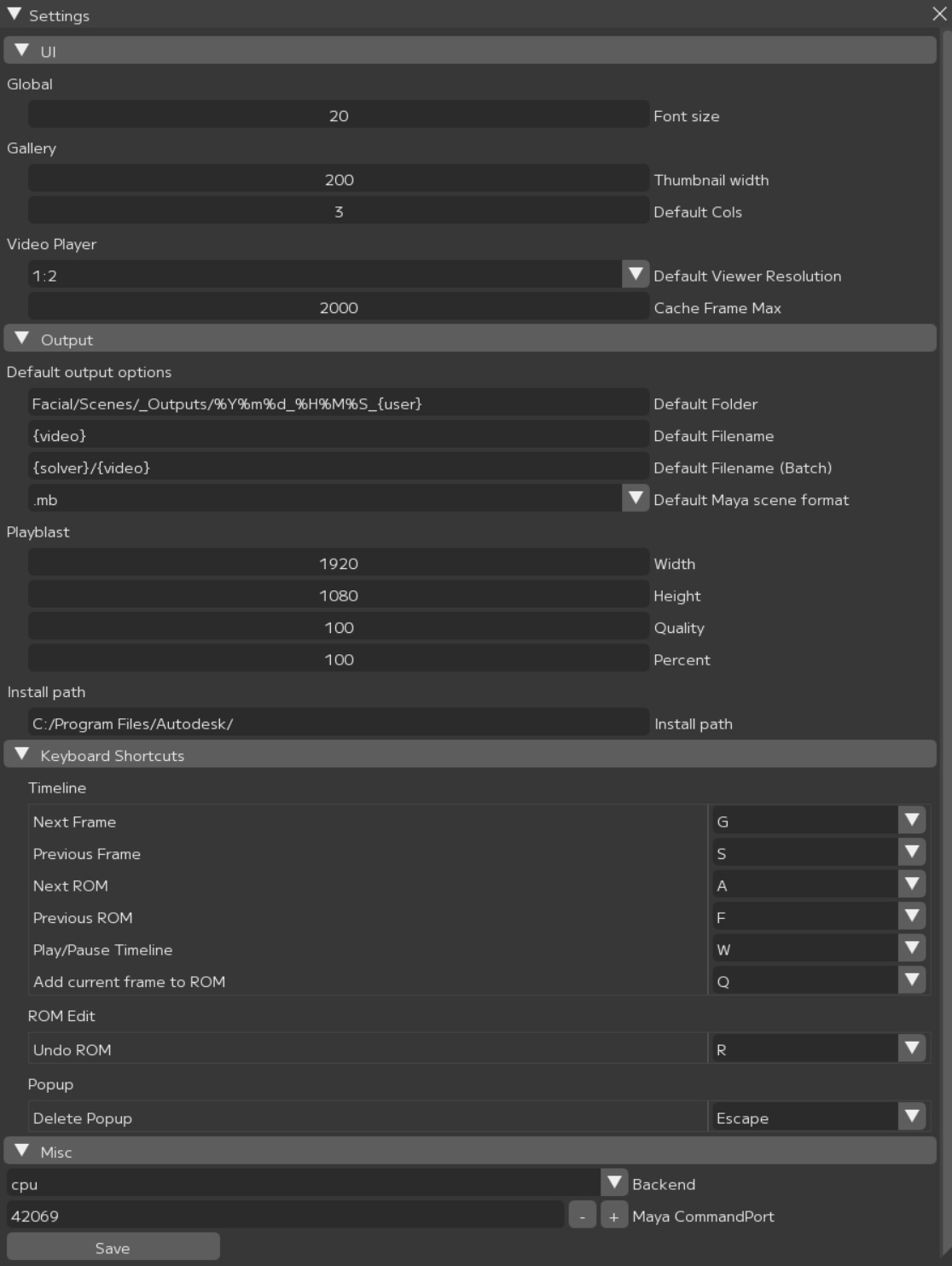 「Settings/Maya/Image Plane」や「Settings/Maya/camera」から、使用するカメラやイメージプレーンの名前を設定してください。