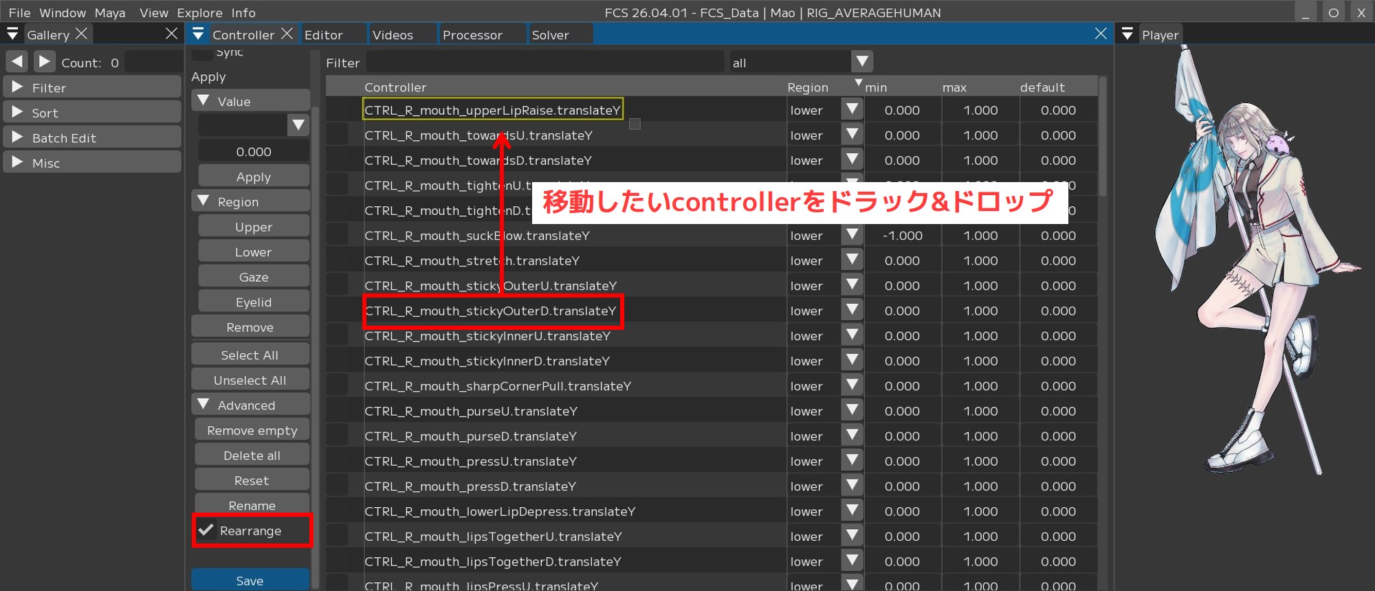 You can also register the minimum and maximum values of controllers when registering controller rigs.
