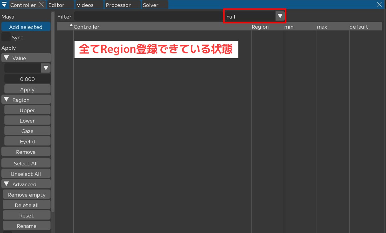 Note that even if you press [Add selected] without setting a Region, the previously checked controllers will be unchecked and only the newly added controllers will be checked.