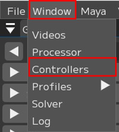 In the Controller window, you can register the controller rigs of the connected MayaScene.