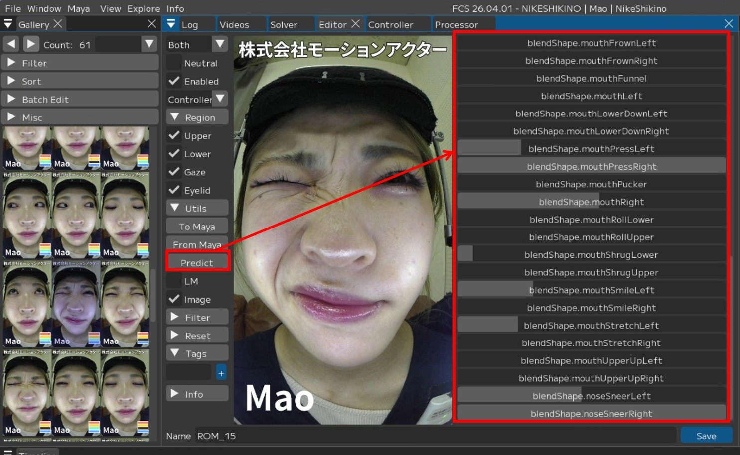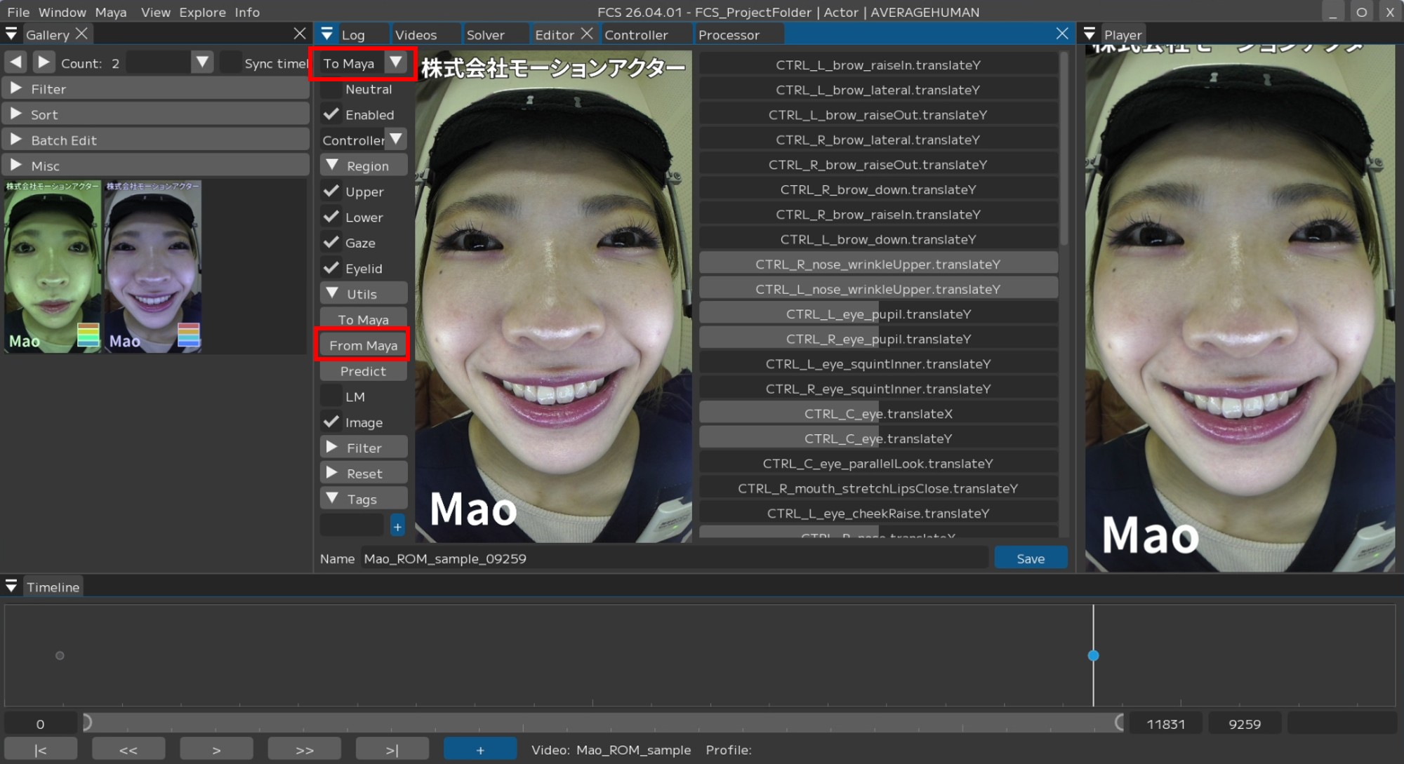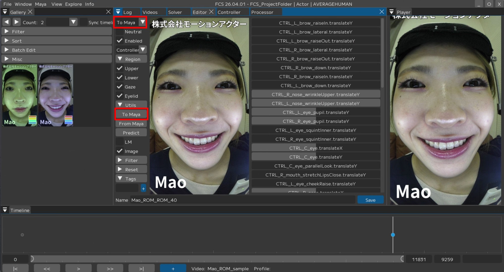 Clicking a Profile in the Gallery will apply the corresponding expression to Maya.