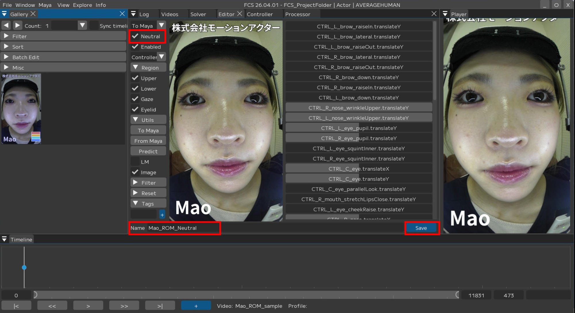 3. Adjust the character’s expression using [Controller] in the Editor to match the added actor’s expression.