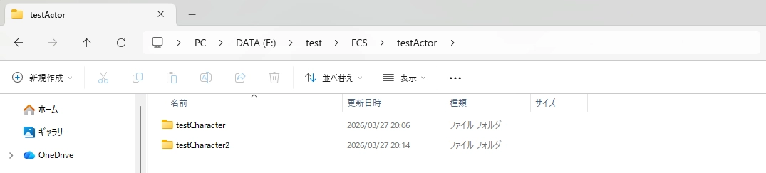 If you want to export testCharacter2 at the same level as E:\test\FCS\testActor\testCharacter, specify the destination as follows.