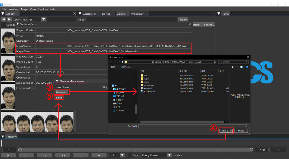 Please refer to the procedures below for how to reconfigure Maya data paths and how to import sample videos.