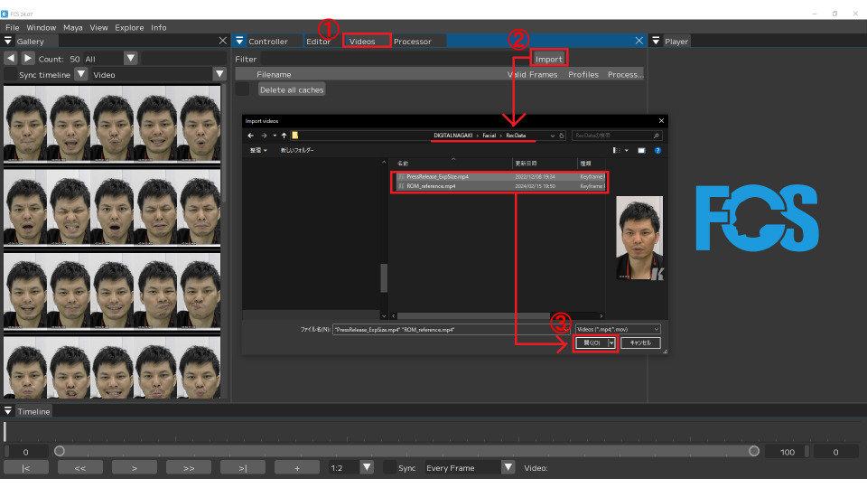 Both already have approximately 50 Profiles pre-created from the facial ROM exercise video, so by loading a sample video and creating Profiles, you can experience FCS without building a Session from scratch.