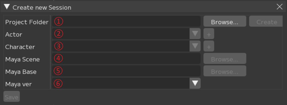 ④ Maya Scene: Path input field for the 3D model Maya scene