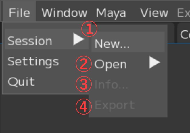 - Open…: Select a .yaml file from the dialog to open a Session.