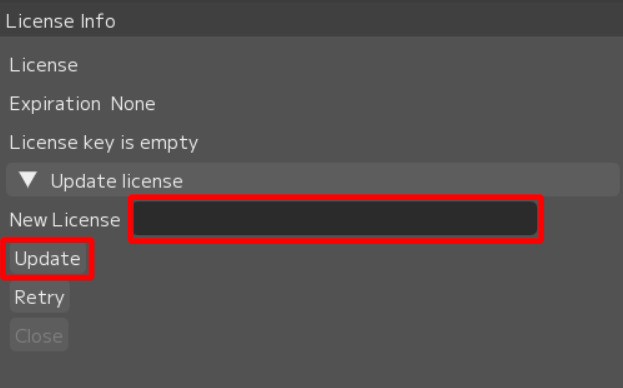 【New License】にライセンスキーを入力し、【Update】を押します。