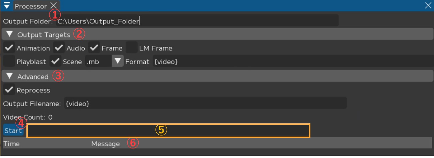 Processerウィンドウでは複数の動画を一括で処理するバッチ機能が使用できます。