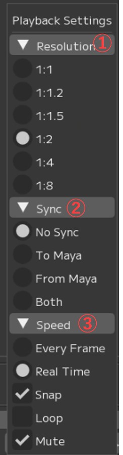 ① To Maya▼:数値の操作をMayaと同期させるかどうかの設定
