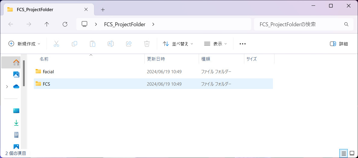 エクスプローラーで【Facial】【FCS】のフォルダが作成されます。