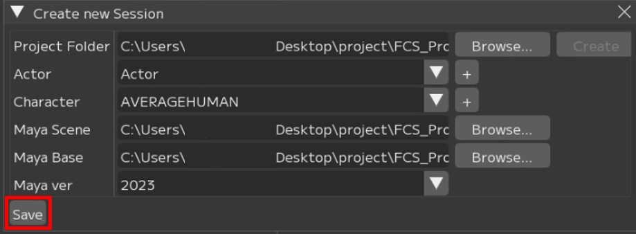 FCSではアクター情報、キャラクター情報、Mayaシーン情報とその解析データを紐づけたファイルのことを「Session」と呼びます。