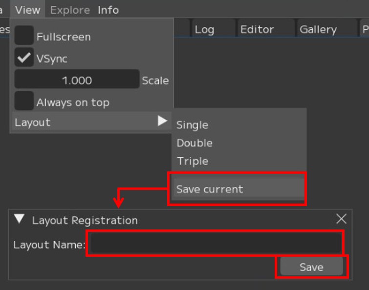1.【Save current】を押すと「Layout Registration」ウィンドウが出るので、