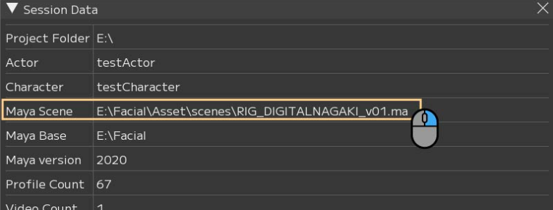 ⑤ Mayaシーンを保存し、File>Session▶>Info…からMaya Sceneに登録します。