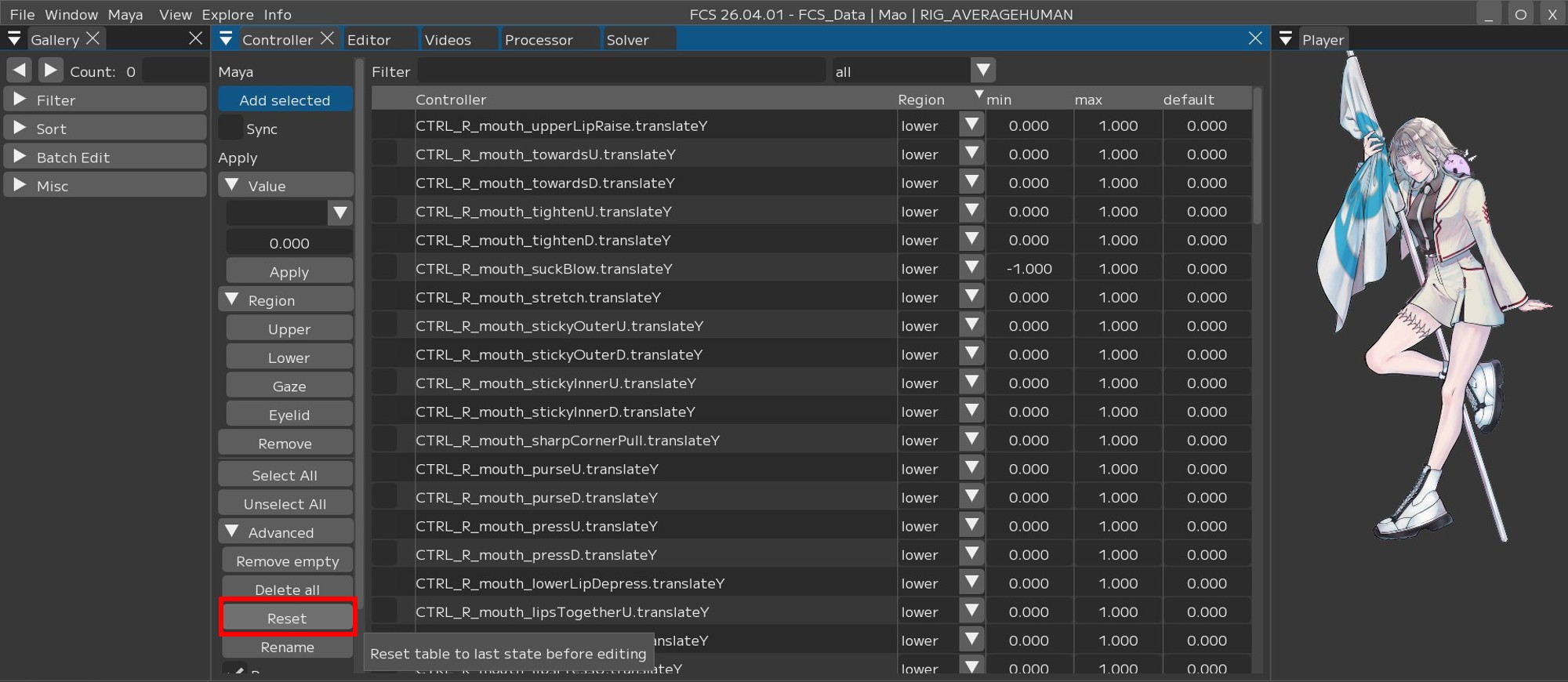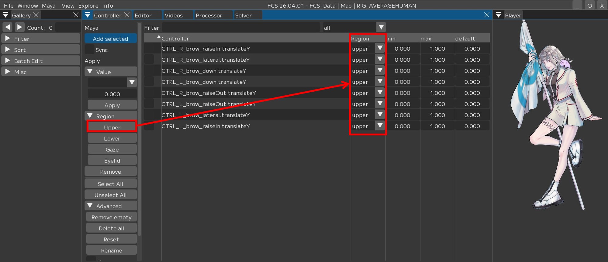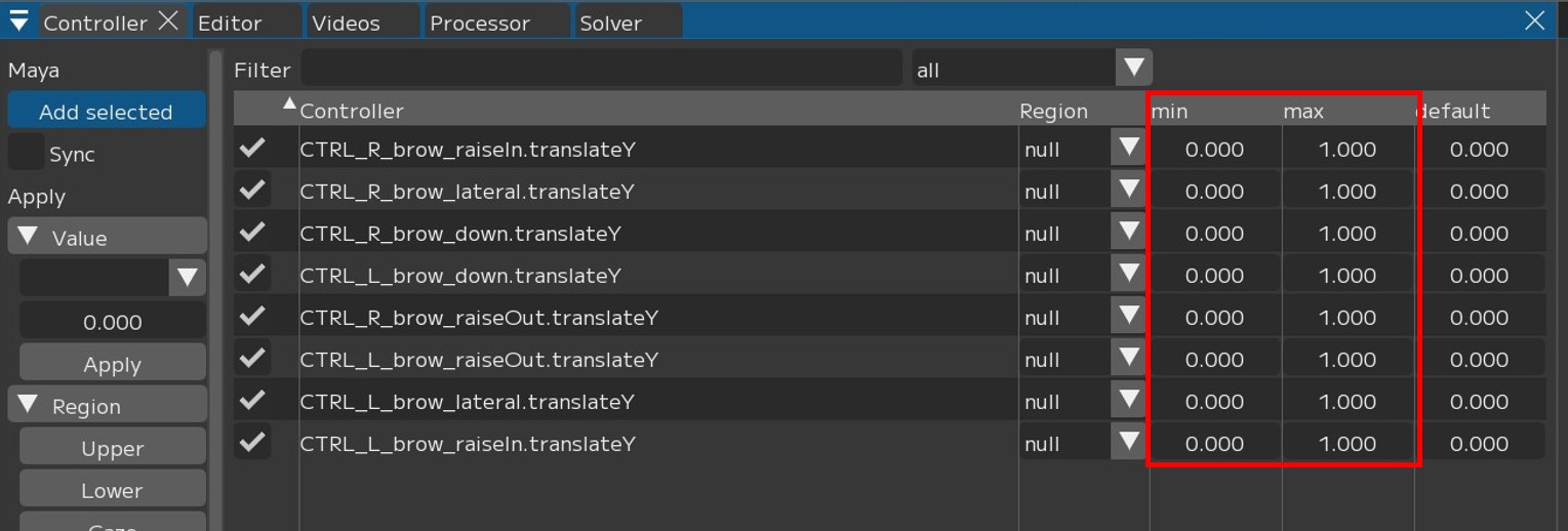 同じ手順で他のRegion(Eyelid/Gaze/lower)も設定してください。