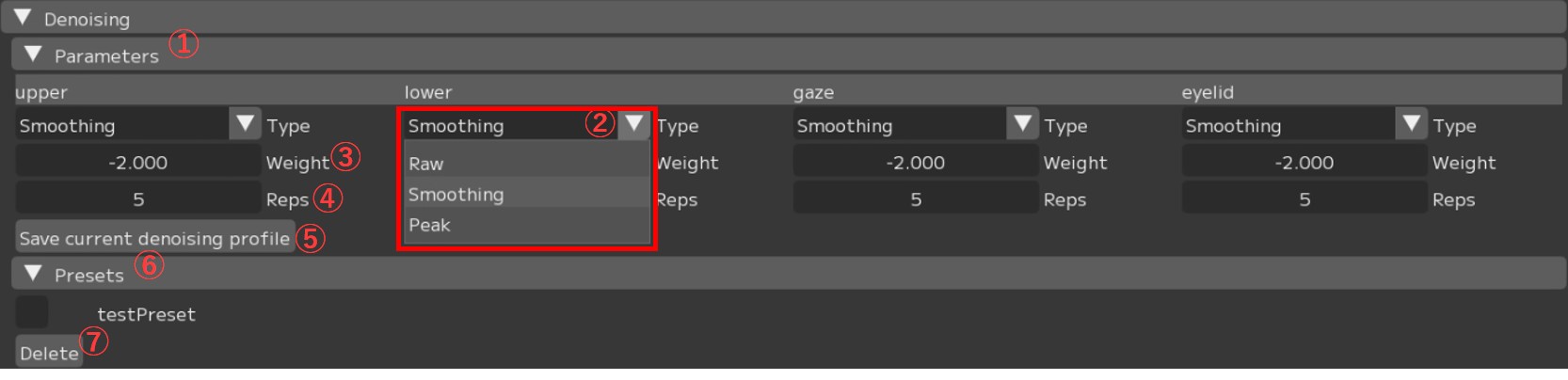 ⑤【Save current denoising profile】:現在の設定をプリセットとして保存