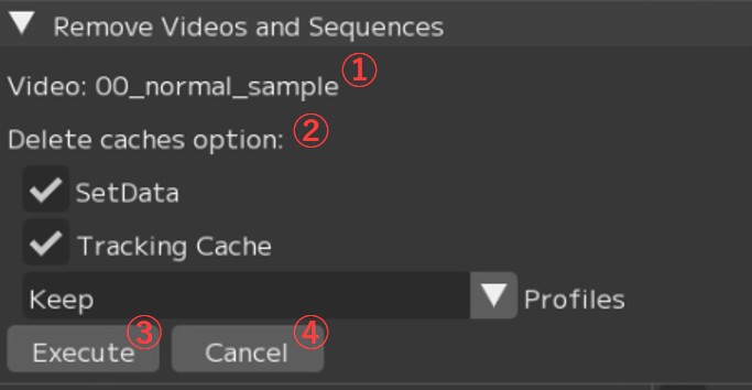 ・ ☑ Tracking Sequence:動画のトラッキングデータも削除するか